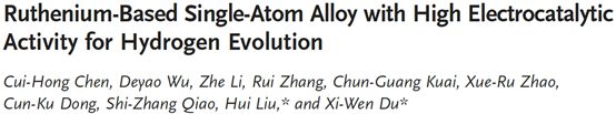 构建能在碱性条件下高效稳定的析氢反应(HER)电催化剂对实现电催化水分解十分重要。现阶段,铂(Pt)基虽然有着较高的活性和稳定性,但却受限于昂贵的成本难以大规模应用。钌(Ru)的成本约为Pt的三十分之一,但也有着较为理想的碱性HER催化活性。基于此,天津大学杜希文和刘辉课题组使用激光烧蚀(laser ablation)法首次合成了钌金单原子合金(RuAn SAA)催化剂,并将其用于碱性条件下的HER电催化。